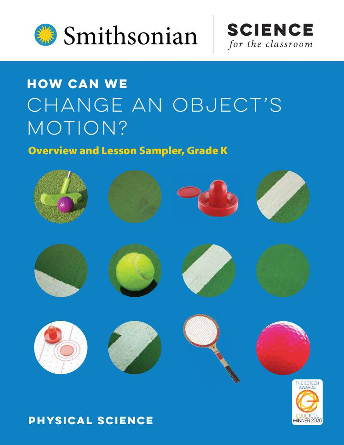 Overview and lesson samplers include an overview of the Smithsonian Science for the Classroom program, a module specific overview including the Phenomena and Problems Storyline, the module’s assessment map, a complete lesson from the Teacher’s Guide with step-by-step instructions for conducting an investigation, student notebook sheets, and a sample from the student literacy reader.